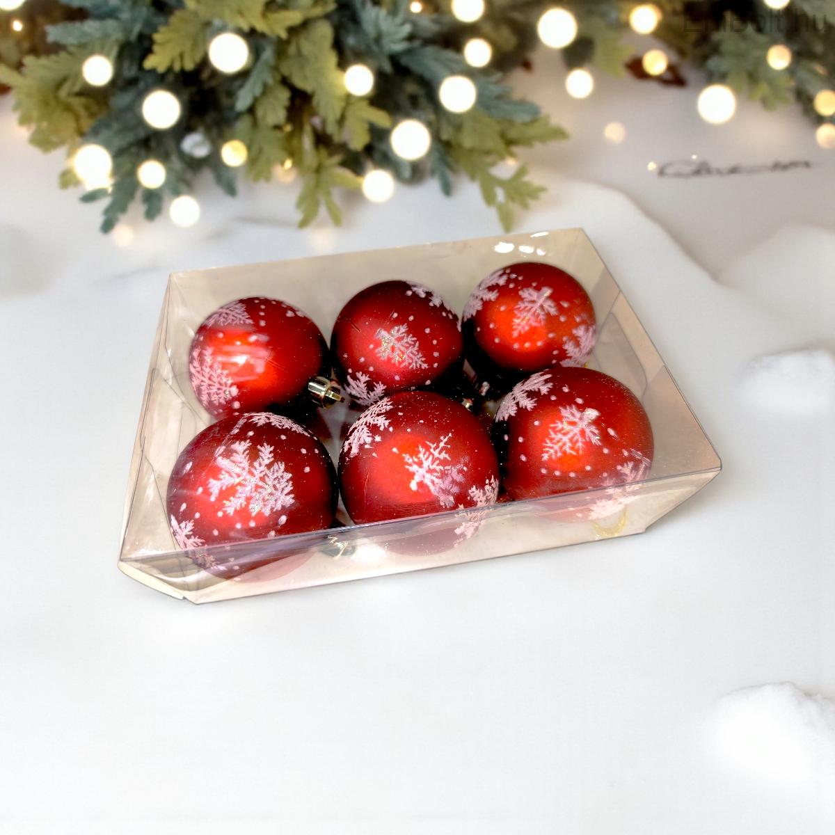 Kezdőlap » Karácsonyi dekorációk » Karácsonyfa gömbök » Piros díszek » Télvarázs piros karácsonyfadísz szett fehér fenyő mintával 6cm – 6db
