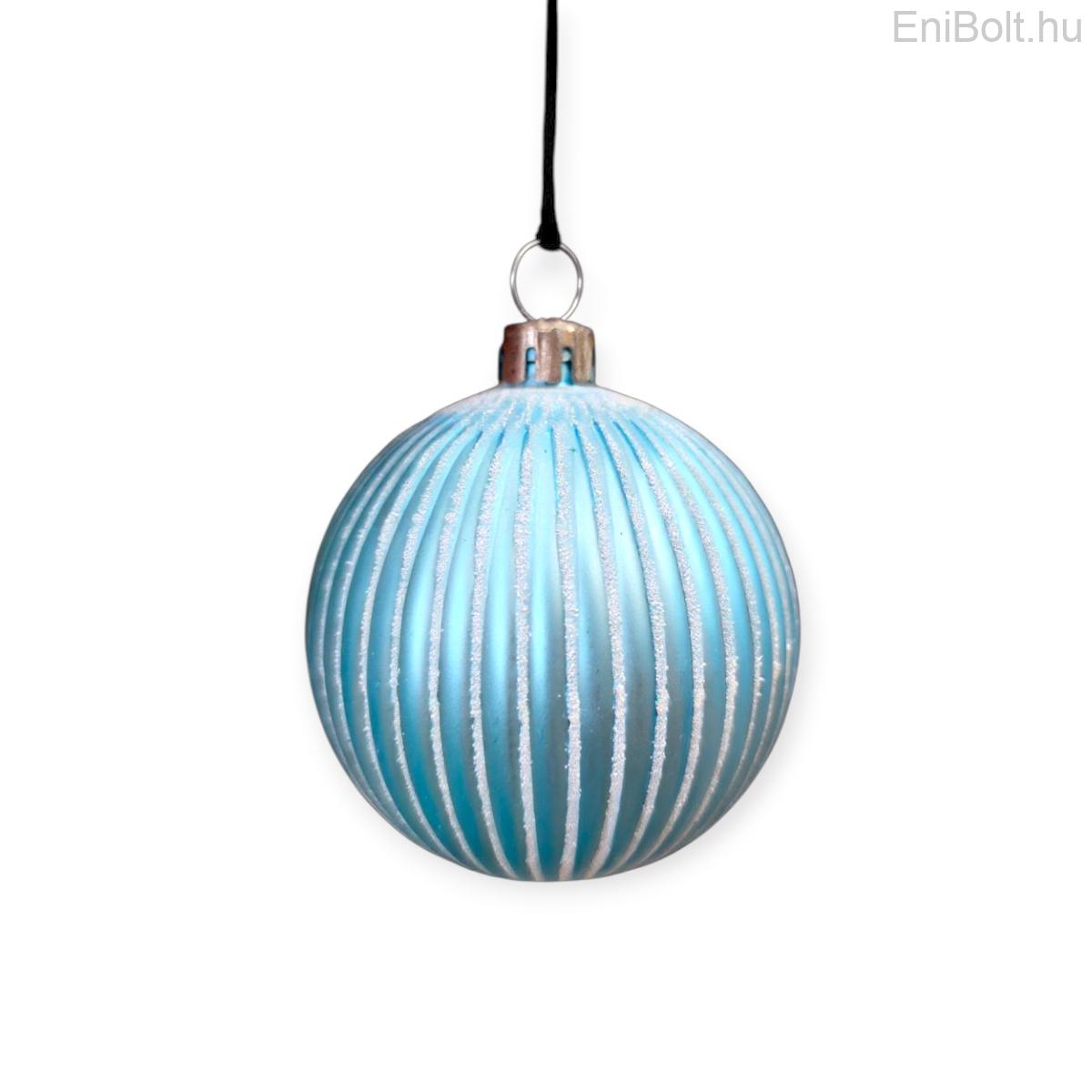 Türkiz karácsonyfadísz irizáló fehér csíkokkal 8 cm