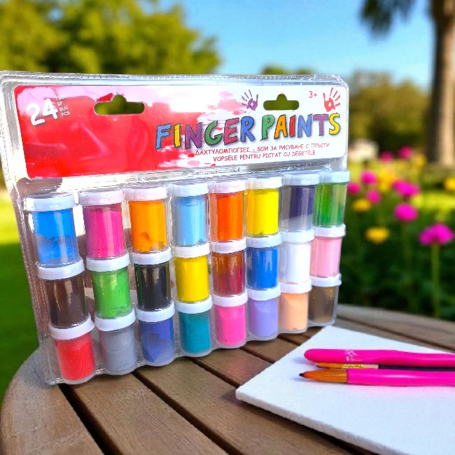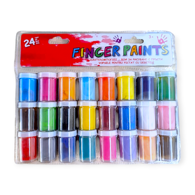 Kezdőlap » Iskolai és parti kellékek » Festékek, festészeti kellékek » Ujjfesték szett gyerekeknek – 24 szín, nem mérgező