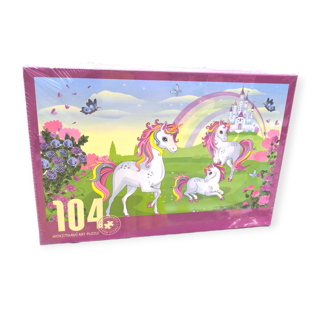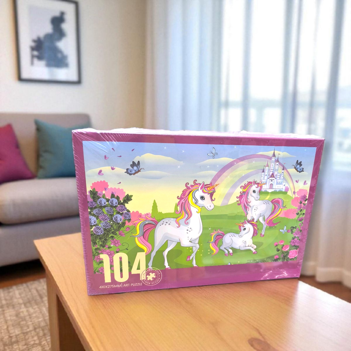 Varázslatos kirakó szett gyerekeknek, amely három bájos unikornist, kastélyt és szivárványt ábrázol. A 104 darabos puzzle nemcsak szórakoztató, hanem fejleszti a megfigyelőképességet, a logikus gondolkodást és a szem-kéz koordinációt is.