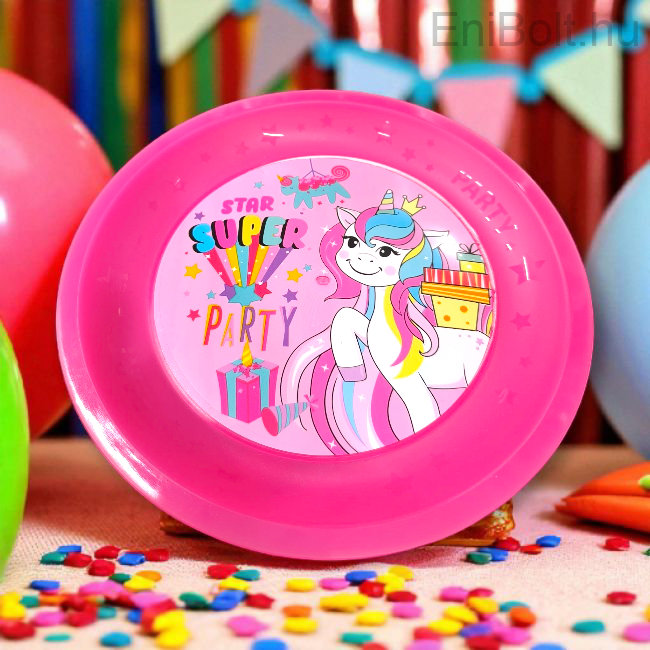 Kezdőlap » Iskolai és parti kellékek » Parti kellékek » Unikornis rózsaszín műanyag tányér 21 cm – bpa mentes, többször használatos