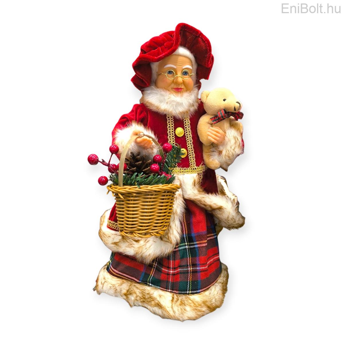 Kezdőlap » Karácsonyi dekorációk » Mikulás figurák » Valósághű karácsonyi figura – Télanyó kosárral és plüssmackóval 48cm