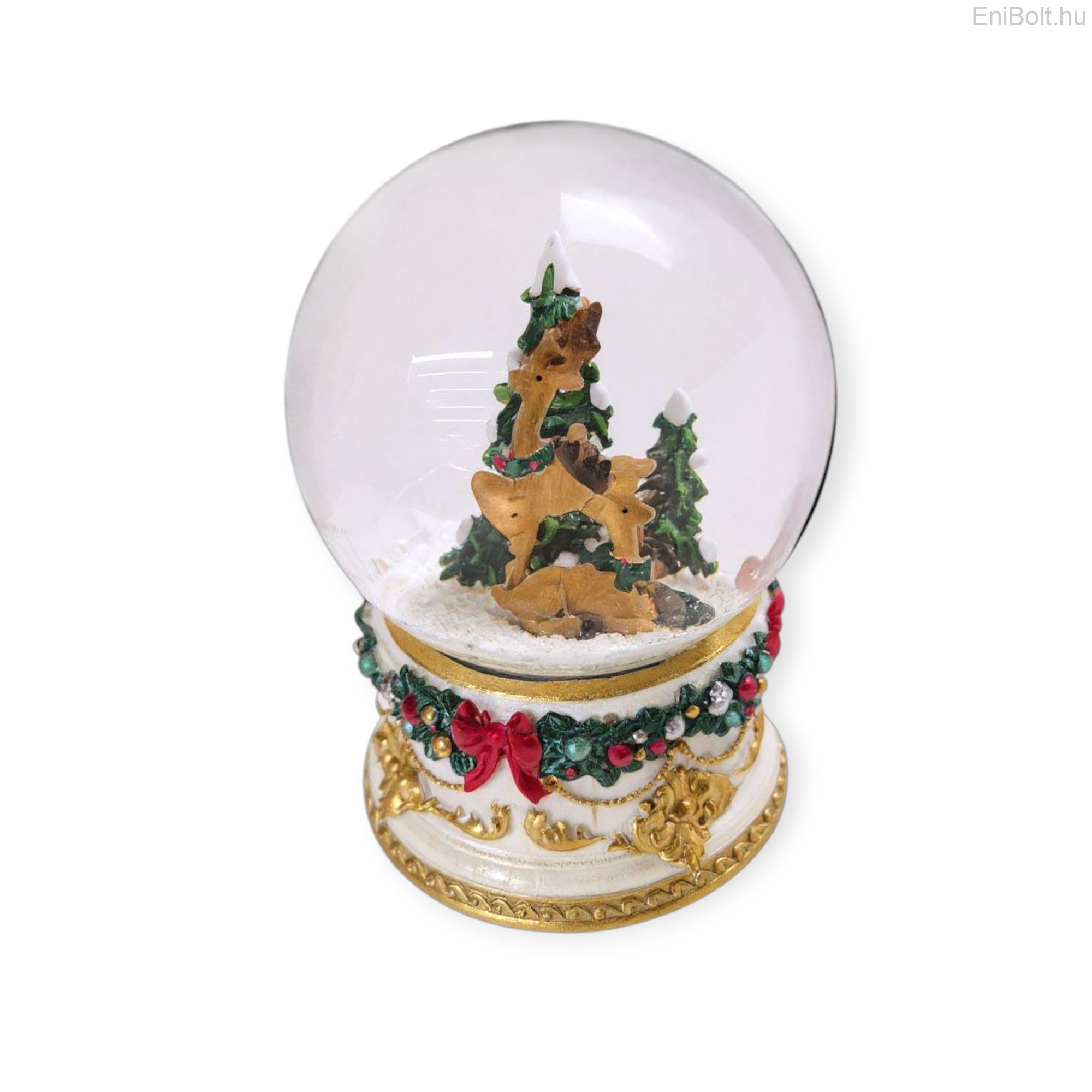 Vintage rénszarvas zenélő karácsonyi hógömb 14 cm