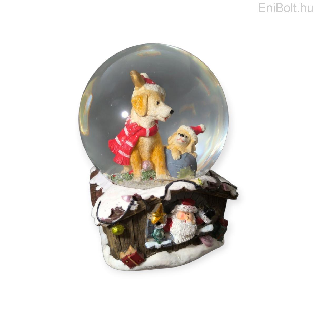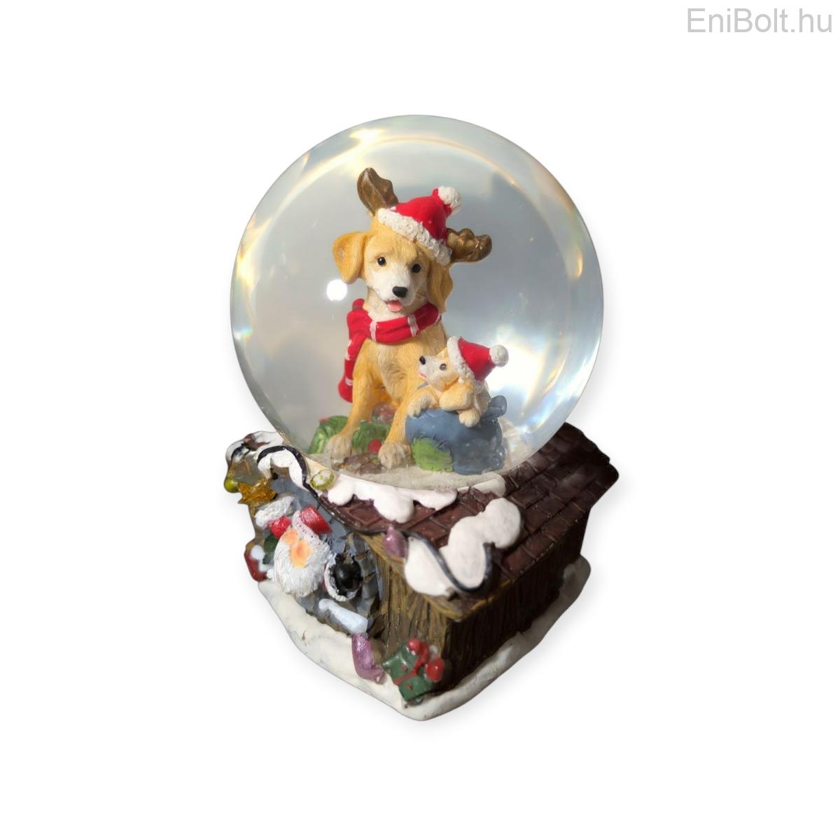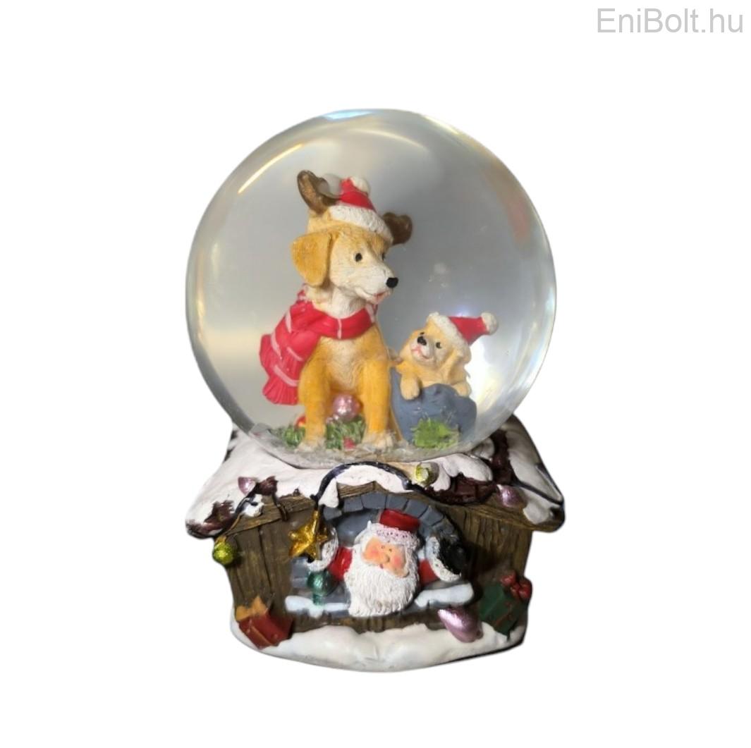 Kezdőlap » Karácsonyi dekorációk » Hógömbök » Zenélő karácsonyi hógömb kutyákkal – Barna ház dekoráció, 13,5 cm