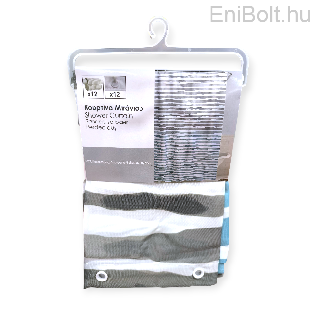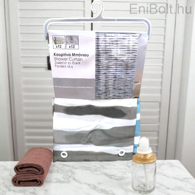 Kezdőlap » Rendszerezés és tisztítás » Fürdőszobai kellékek, tárolók » Fürdőszobai kiegészítők » Zuhanyfüggöny hullámos mintával – 180×180 cm, szürke-zöld árnyalatokkal, 12 gyűrűvel
