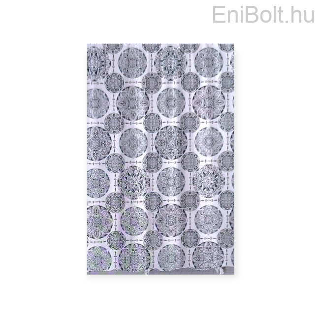 Zuhanyfüggöny vintage kékszürke kör mintával – 180x180 cm, 12 gyűrűvel